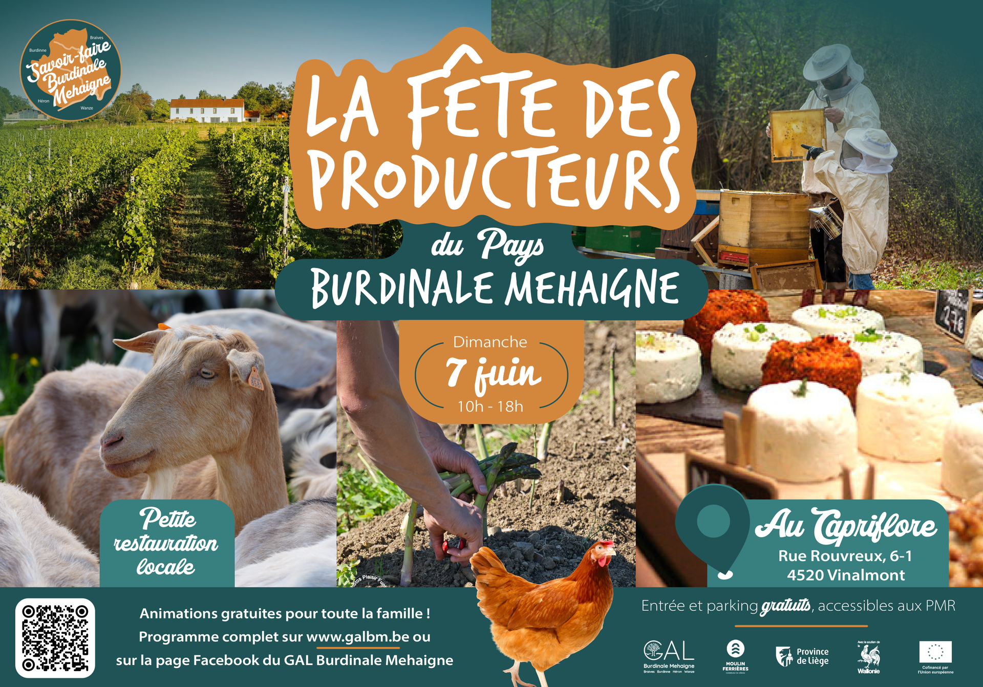 Le dimanche 7 juin prochain, vos producteurs braivois, burdinnois, héronnais et wanzois vous invitent à venir (re)découvrir leurs savoir-faire lors d’une grande journée festive au Capriflore (Vinalmont).